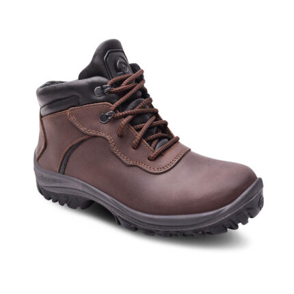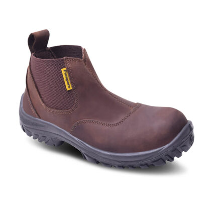 Botín de seguridad fabricado con cuero flor, suela mono-densidad resistente a hidrocarburos, abrasión y dieléctrica. Con puntera de acero que brinda protección certificada contra impactos y plantilla de EVA 4mm con tratamiento antimicótico. Posee ojalillos metálicos con tratamiento anticorrosivo.