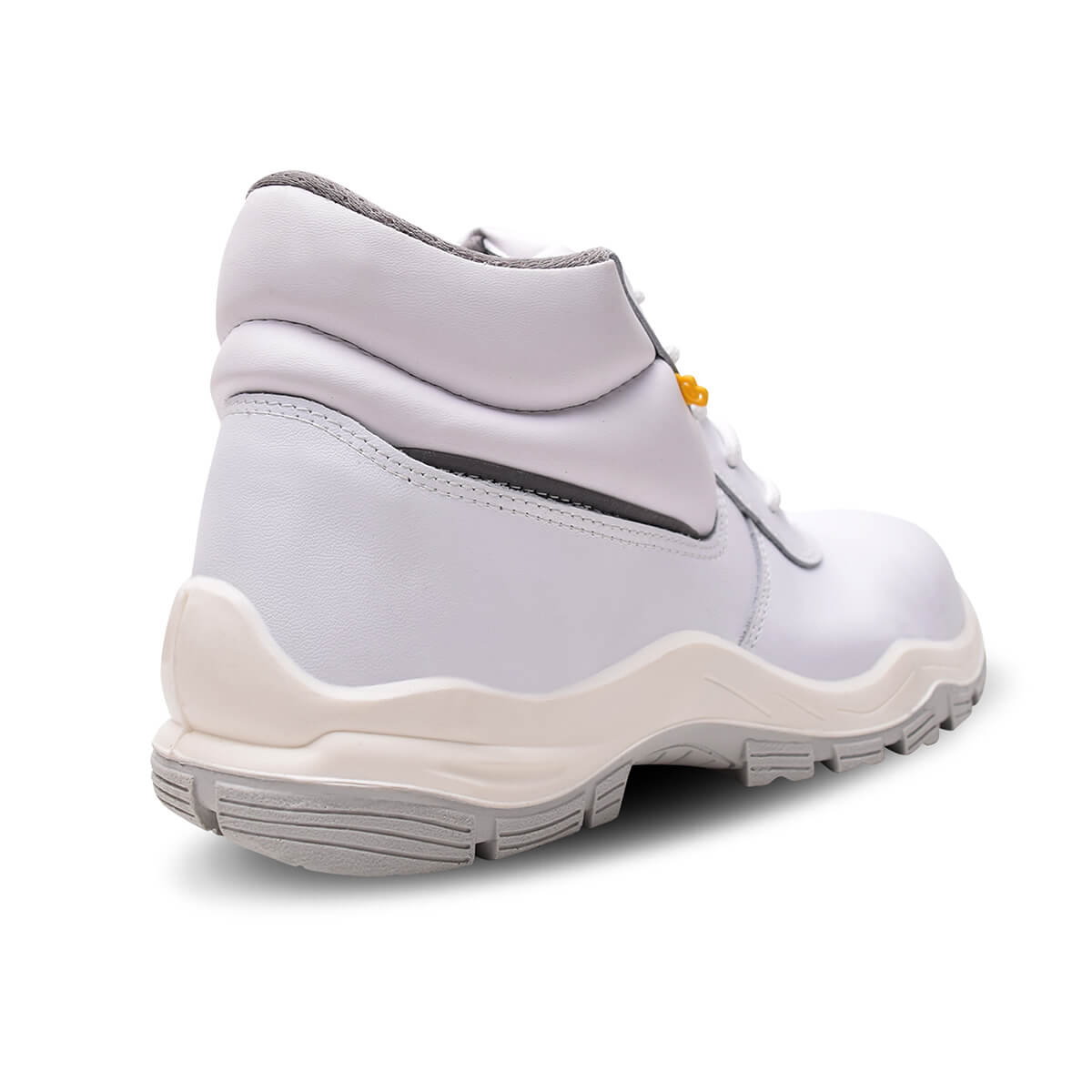 Botín de seguridad fabricado con cuero descarne, suela bi-densidad resistente a hidrocarburos, abrasión y dieléctrica. Con puntera de acero que brinda protección certificada contra impactos y plantilla de EVA 4mm con tratamiento antimicótico.