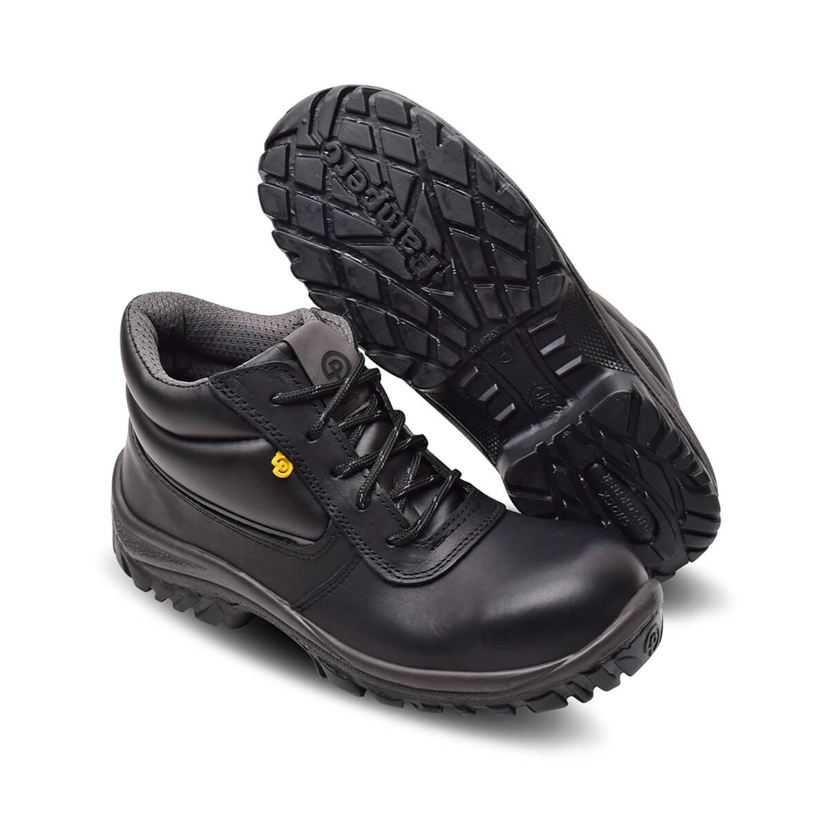 Botín de seguridad fabricado con cuero flor, suela bi-densidad resistente a hidrocarburos, abrasión y dieléctrica. Con puntera de acero que brinda protección certificada contra impactos y plantilla de EVA 4mm con tratamiento antimicótico.